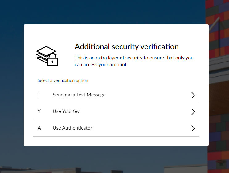 If you’ve previously created password recovery options you can use them here, and setting up the Authenticator will allow you to use it as another MFA verification option as well. Our article on Managing your Account Recovery and MFA Settings provides information on how to do so.